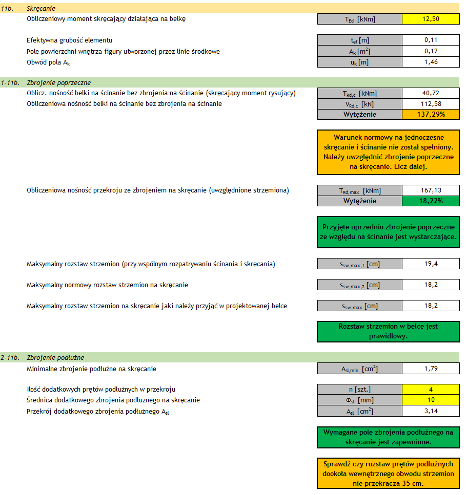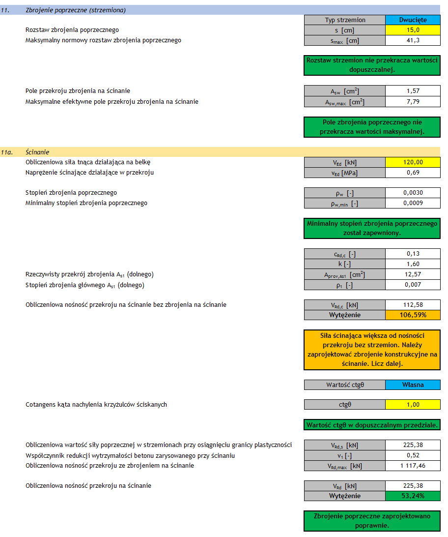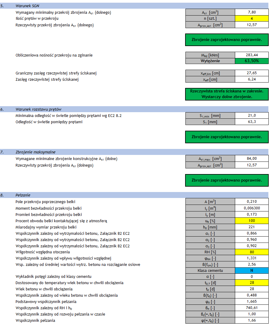 Program pozwala na pełne zwymiarowanie belki żelbetowej o przekroju kwadratowym/prostokątnym według normy PN-EN 1992 (Eurokod 2). Program działa w środowisku Microsoft Excel. |