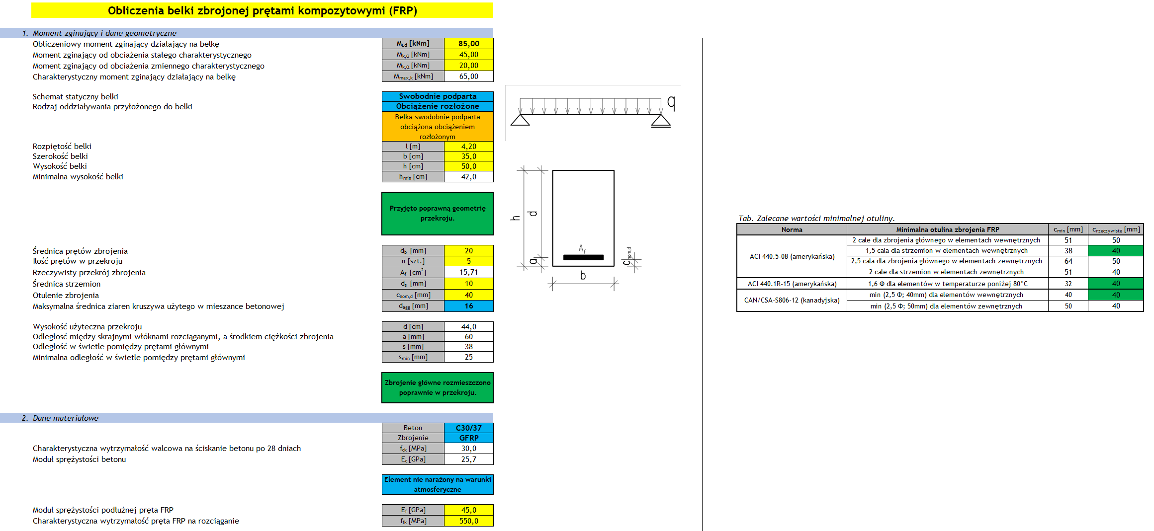 | belka zbrojona FRP kalkulatoryinzynierskie.pl