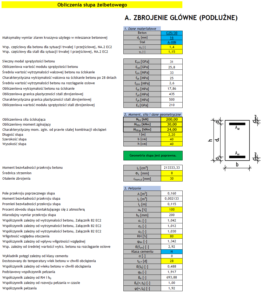 | słup żelbetowy kalkulatoryinzynierskie.pl