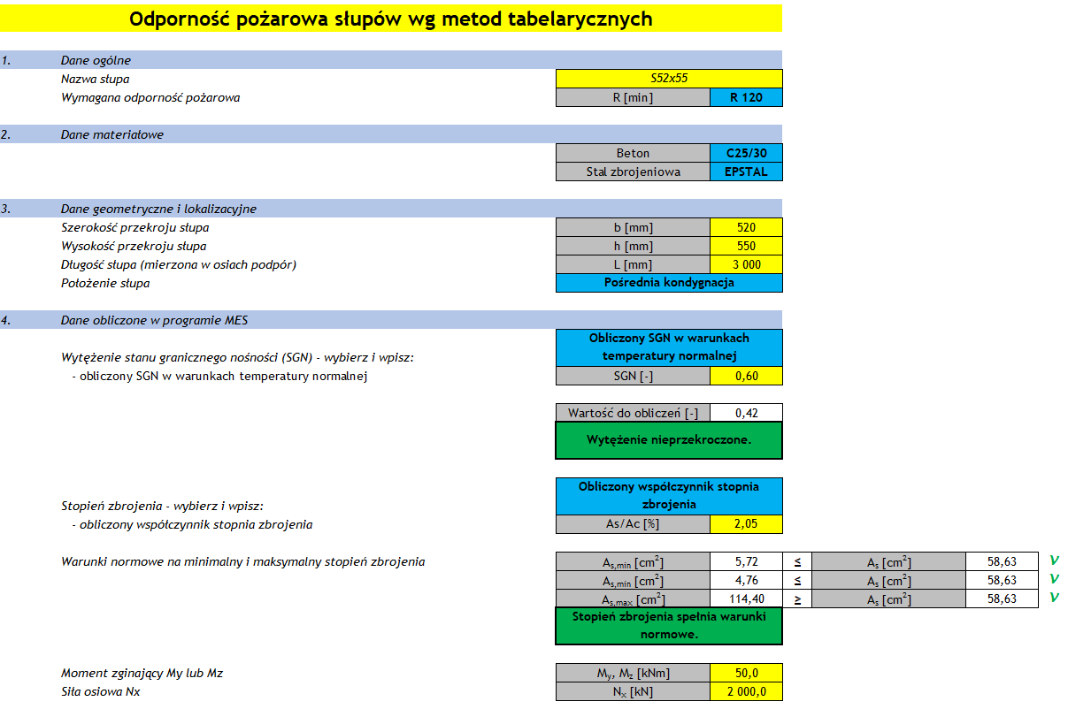 | odporność ogniowa słupa żelbetowego kalkulatoryinzynierskie.pl