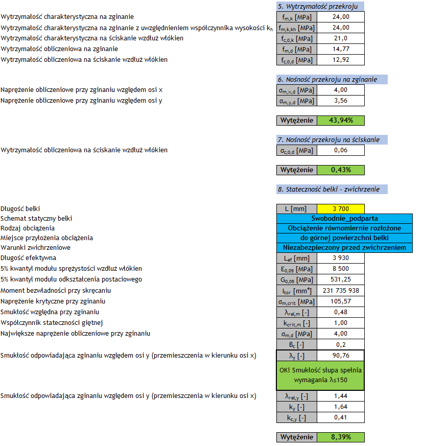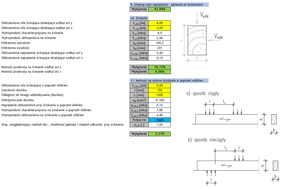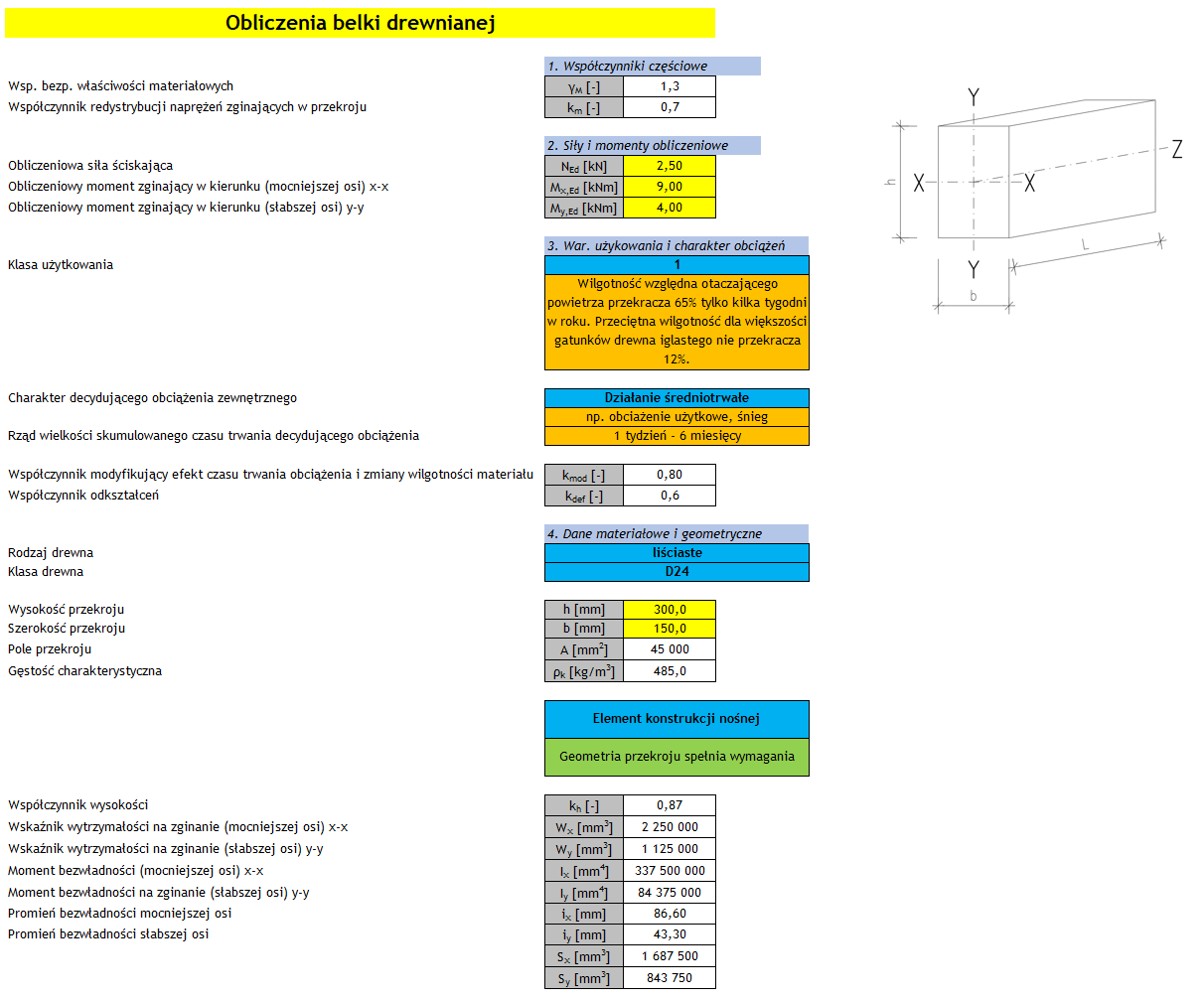Program pozwala na pełne zwymiarowanie belki drewnianej (z drewna iglastego, liściastego lub klejonego warstwowo) o przekroju prostokątnym/kwadratowym według normy PN-EN 1995 (Eurokod 5). Program działa w środowisku Microsoft Excel. |