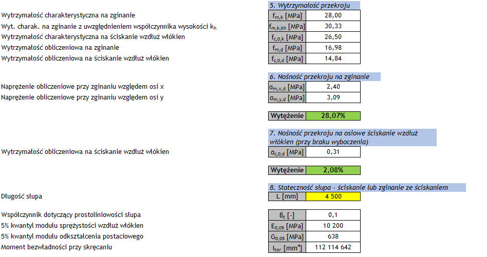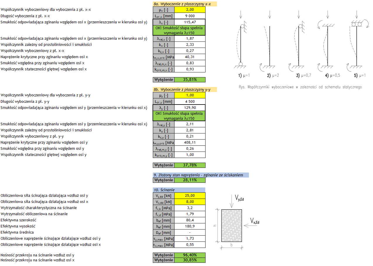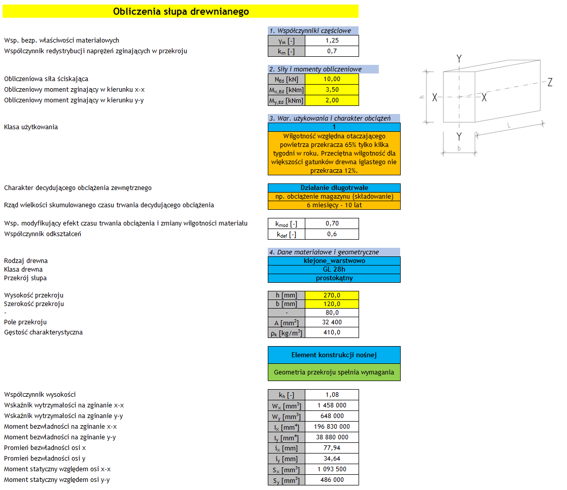 Program pozwala na pełne zwymiarowanie słupa drewnianego (z drewna iglastego, liściastego lub klejonego warstwowo) o przekroju prostokątnym/kwadratowym lub kołowym według normy PN-EN 1995 (Eurokod 5). Program działa w środowisku Microsoft Excel. |