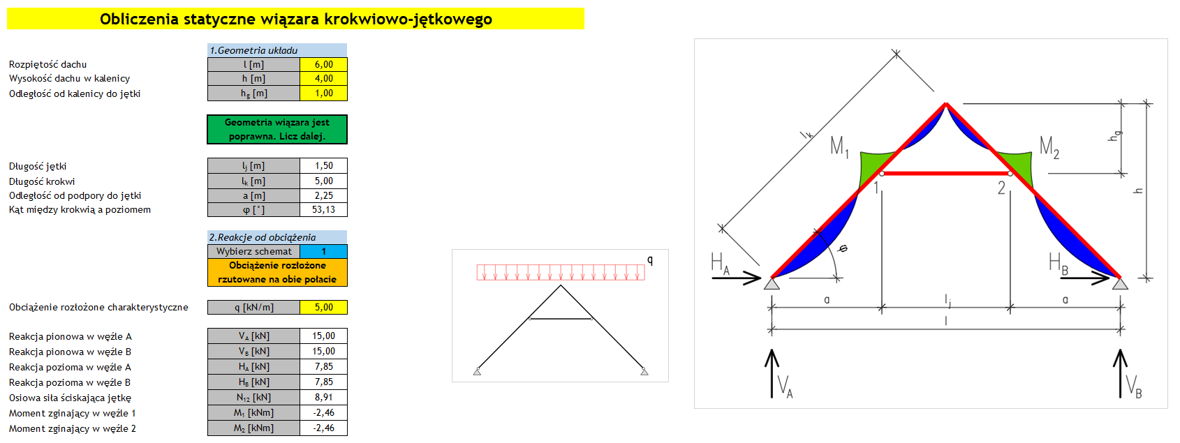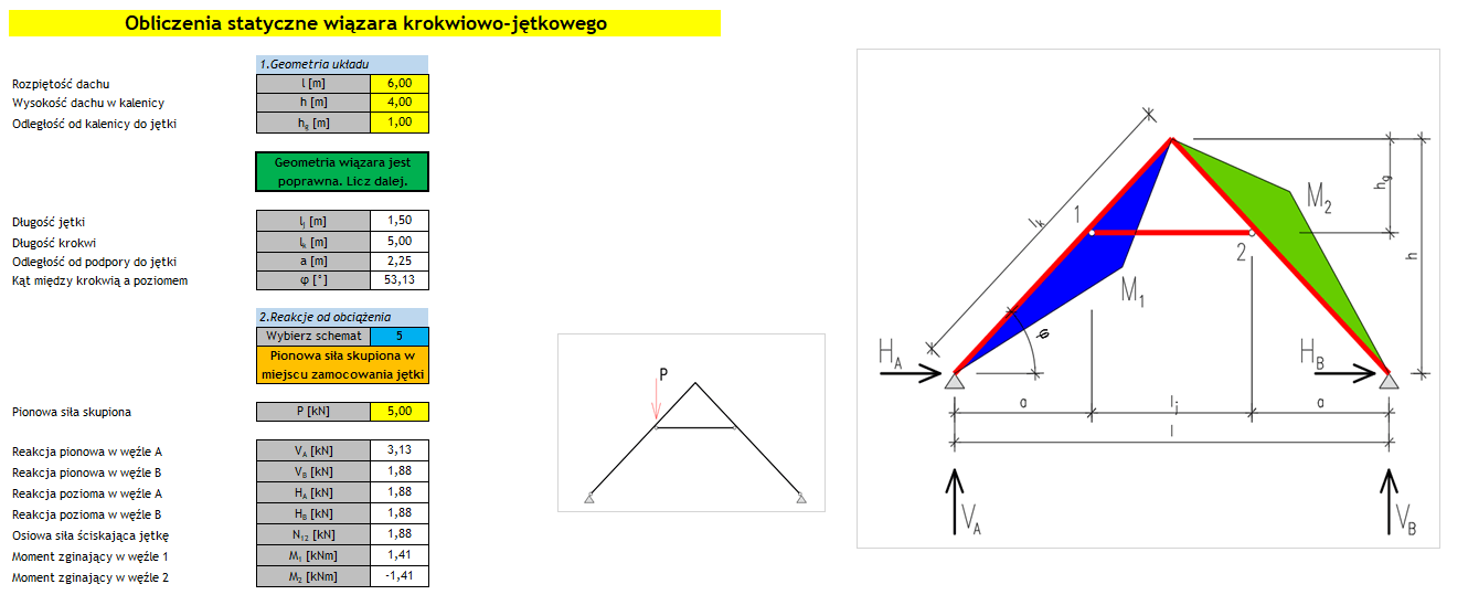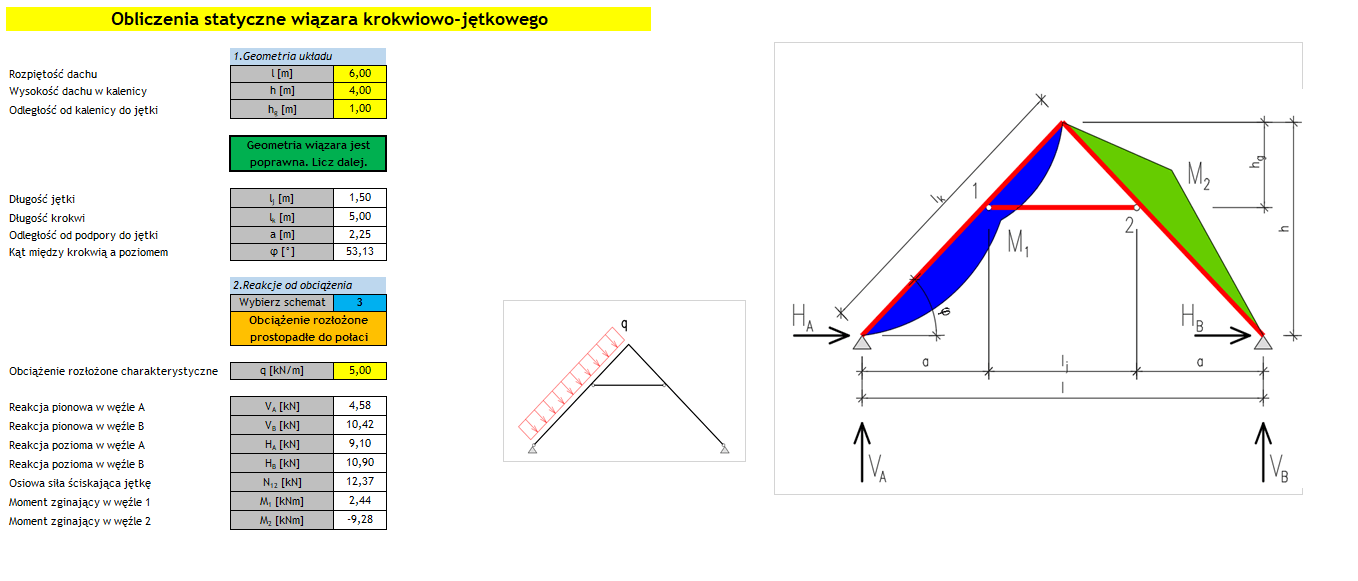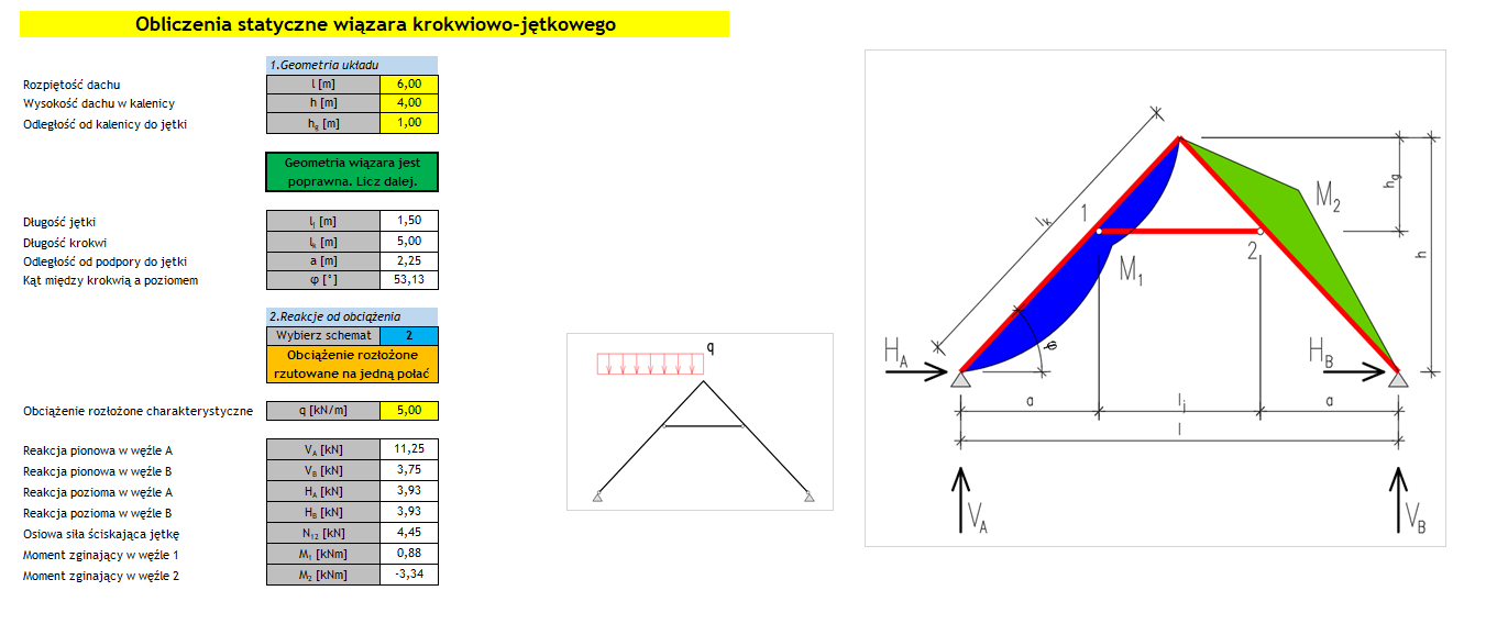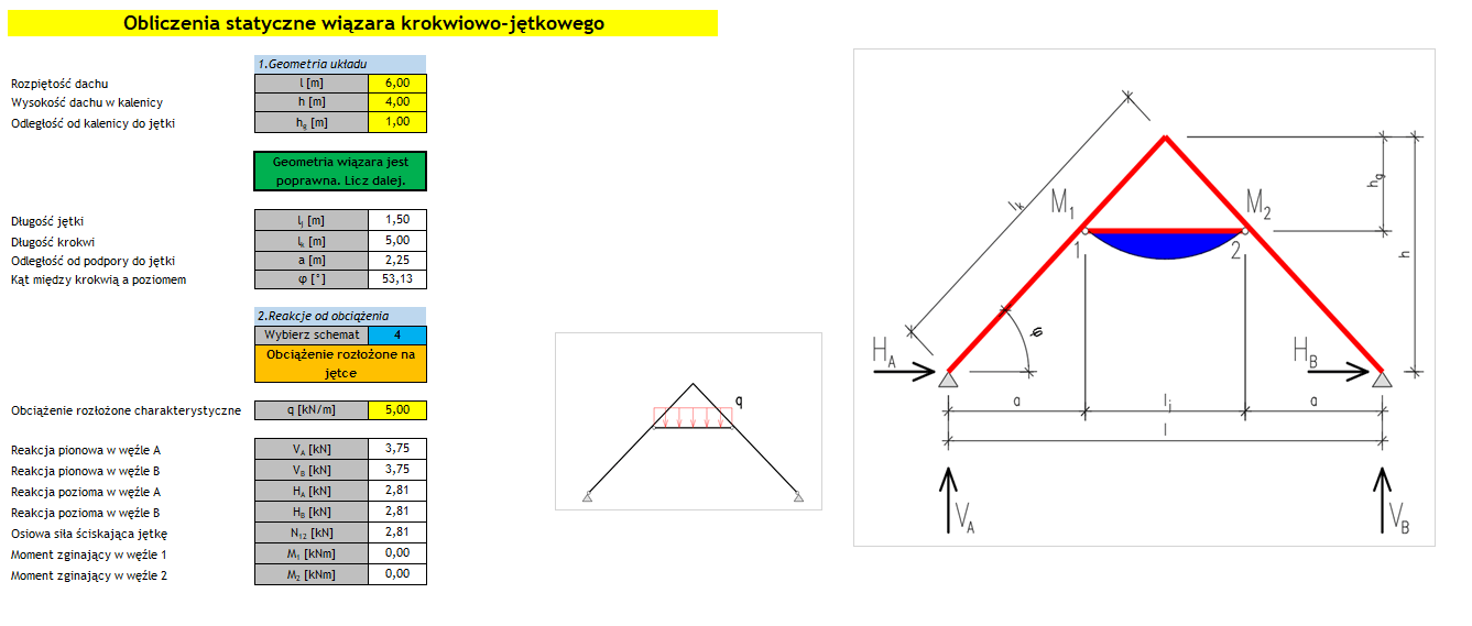 | wiązar krokwiowo-jętkowy kalkulatoryinzynierskie.pl