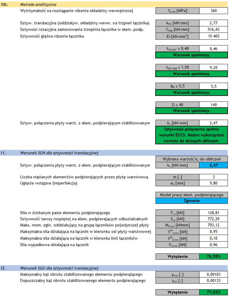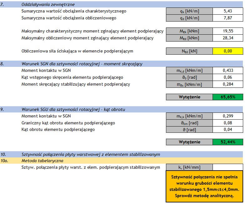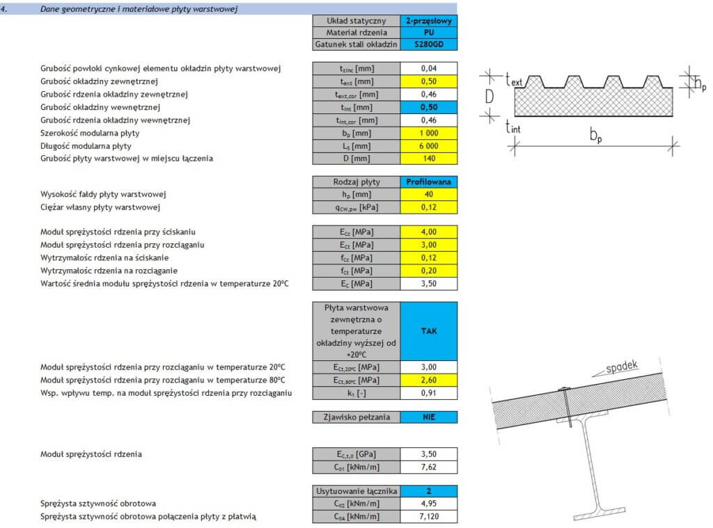 | płyta warstwowa kalkulatoryinzynierskie.pl | Program pozwala na sprawdzenie współpracy płyt warstwowych z konstrukcją stalową pod kątem usztywnienia rotacyjnego oraz translacyjnego i zapewnienia tym samym stateczności układu konstrukcyjnego. Algorytm obliczeniowy został oparty na podstawie „European Recommendations on the Stabilization of Steel Structures by Sandwich Panels” tzw. ECCS-CIB (TC7). Dokument rozszerza zakres zastosowania płyt warstwowych zgodnie z normą PN-EN 1993-1-3 (Eurokod 3). Program działa w środowisku Microsoft Excel. |