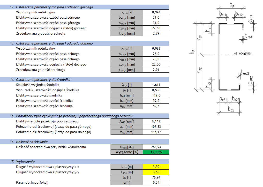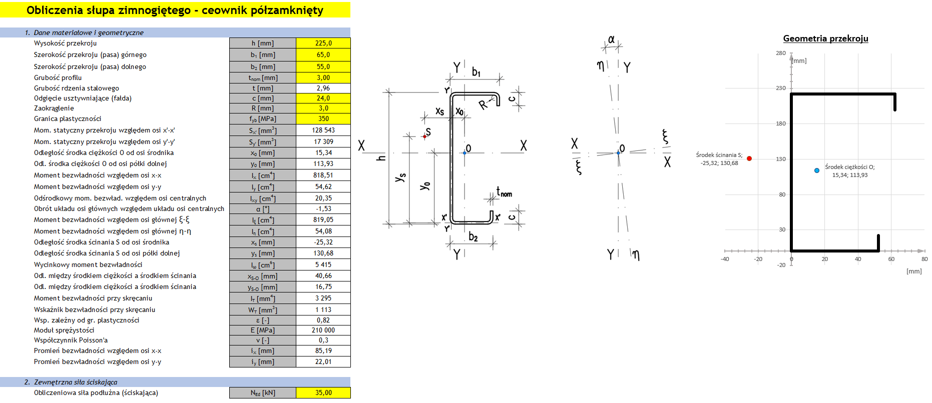 | słup zimnogięty kalkulatoryinzynierskie.pl | Program pozwala na pełne zwymiarowanie słupa stalowego cienkościennego o przekroju ceownika półzamkniętego (z odgięciami) według norm PN-EN 1993-1-1 i 1-3 (Eurokod 3). Program działa w środowisku Microsoft Excel. |