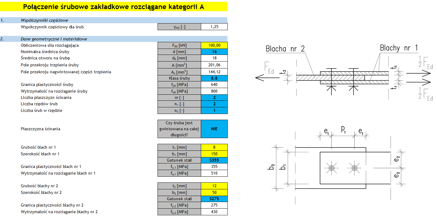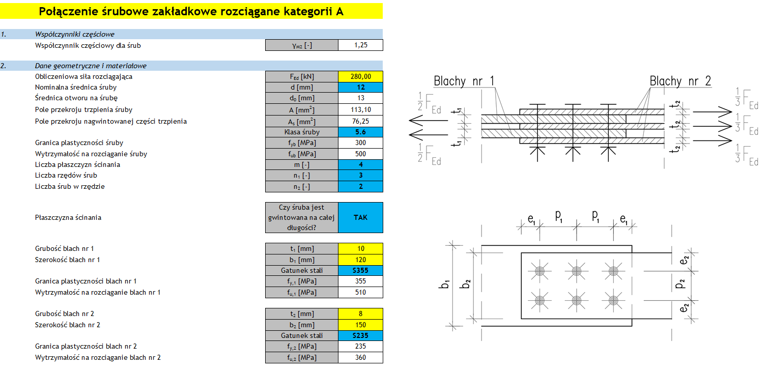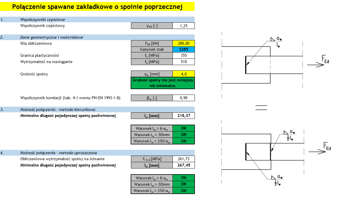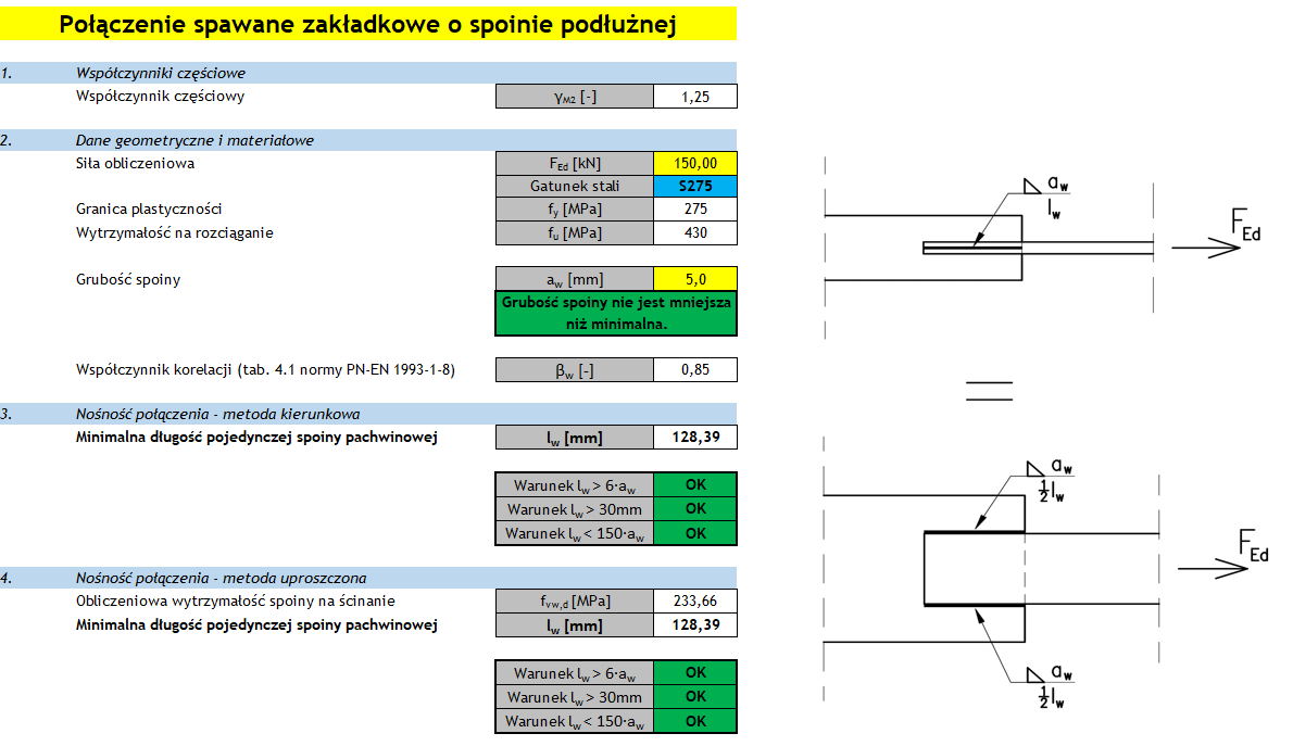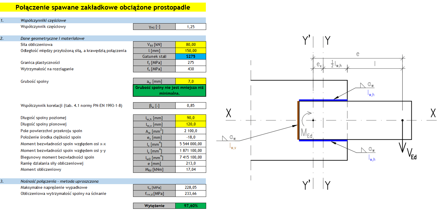 | połączenie zakładkowe śrubowe i spawane kalkulatoryinzynierskie.pl | Program pozwala na pełne zwymiarowanie połączenia zakładkowego: śrubowego kategorii A (dociskowe) oraz spawanego wg normy PN-EN 1993-1-8 (Eurokod 3). Program działa w środowisku Microsoft Excel. |