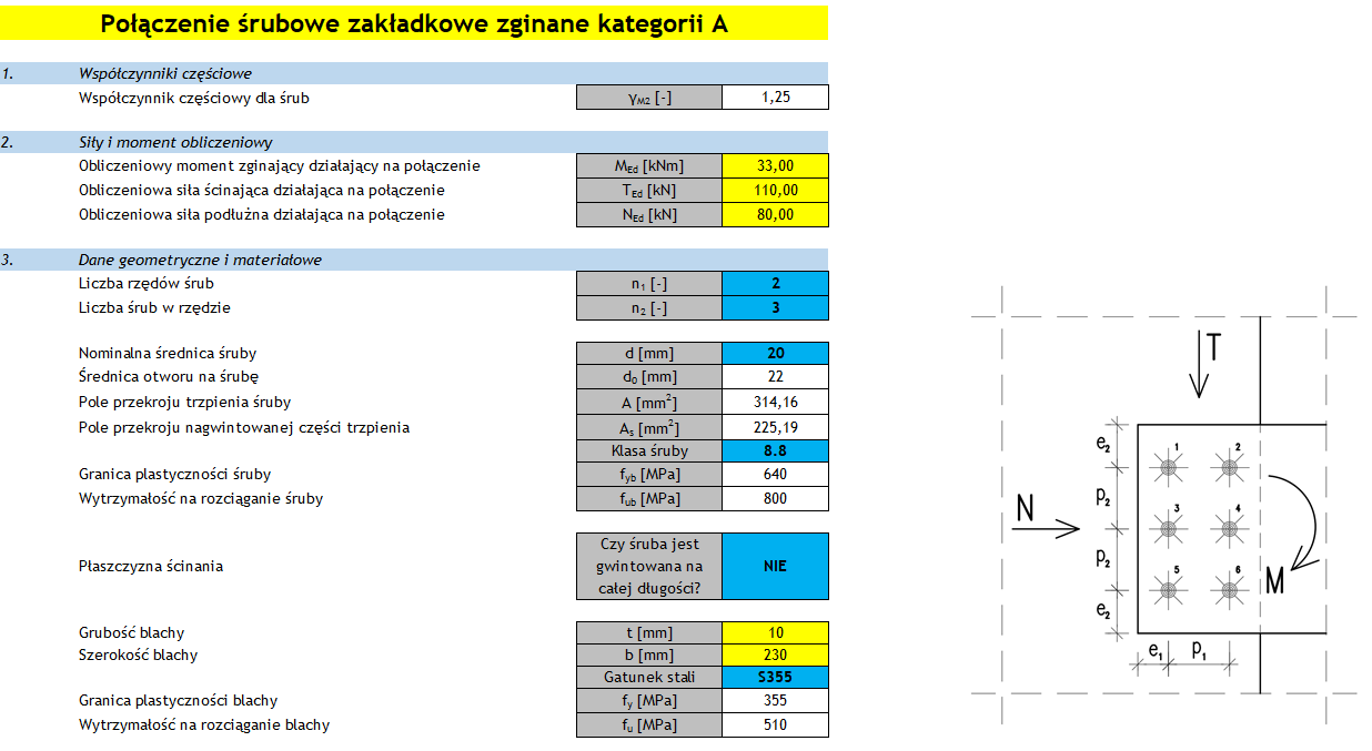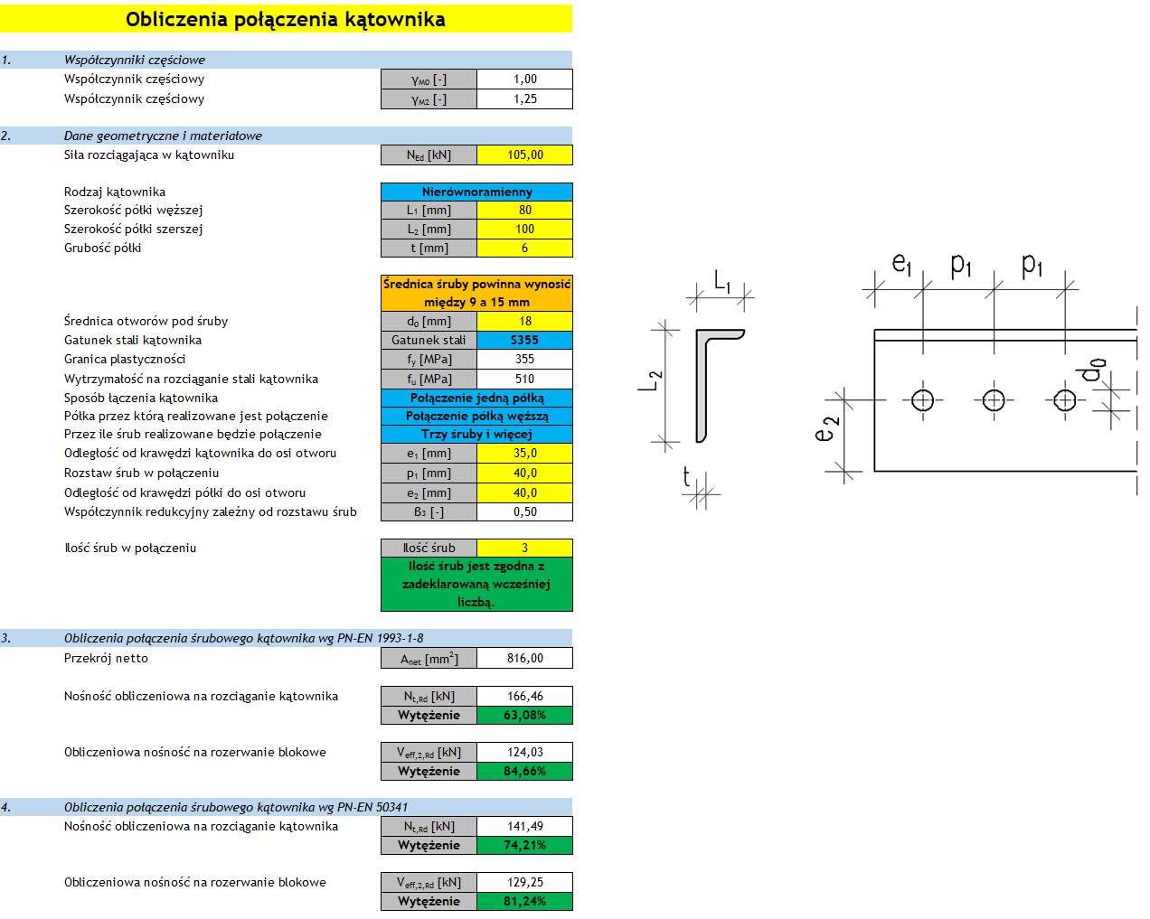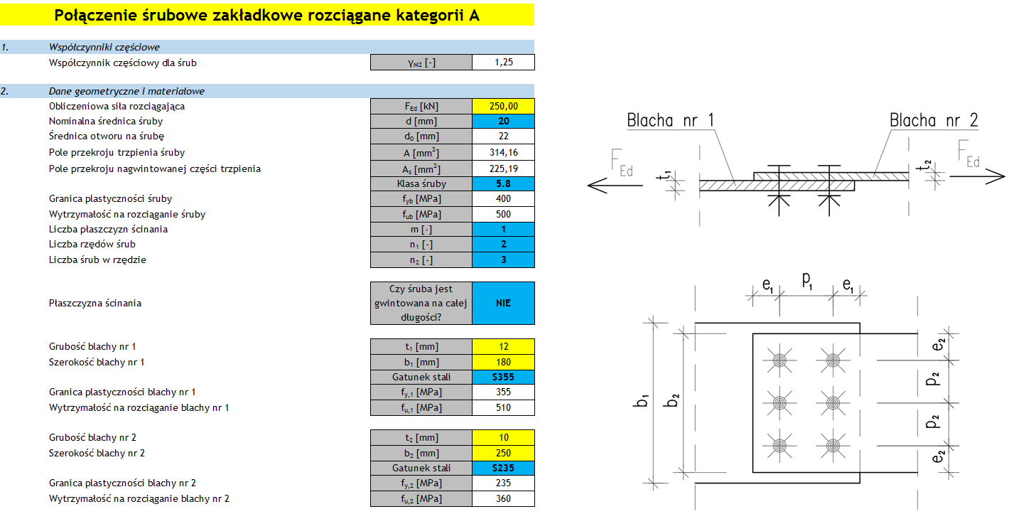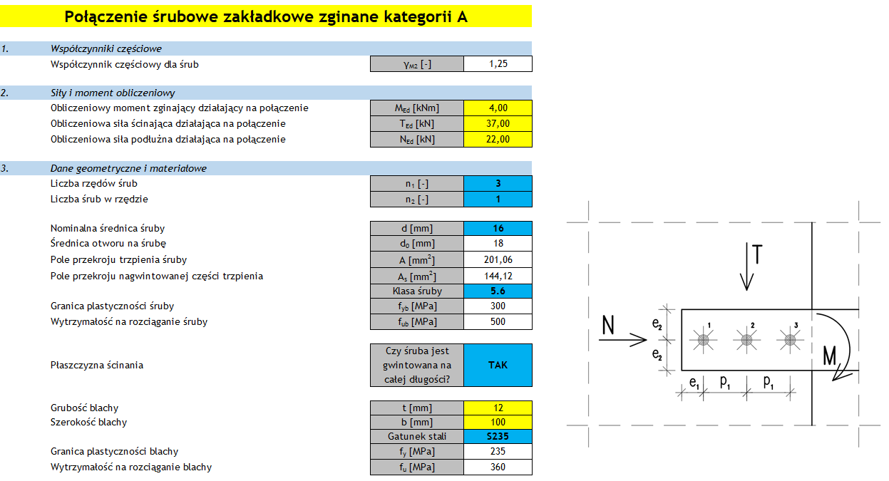 | połączenie zakładkowe śrubowe i spawane kalkulatoryinzynierskie.pl | Program pozwala na pełne zwymiarowanie połączenia zakładkowego: śrubowego kategorii A (dociskowe) oraz spawanego wg normy PN-EN 1993-1-8 (Eurokod 3). Program działa w środowisku Microsoft Excel. |