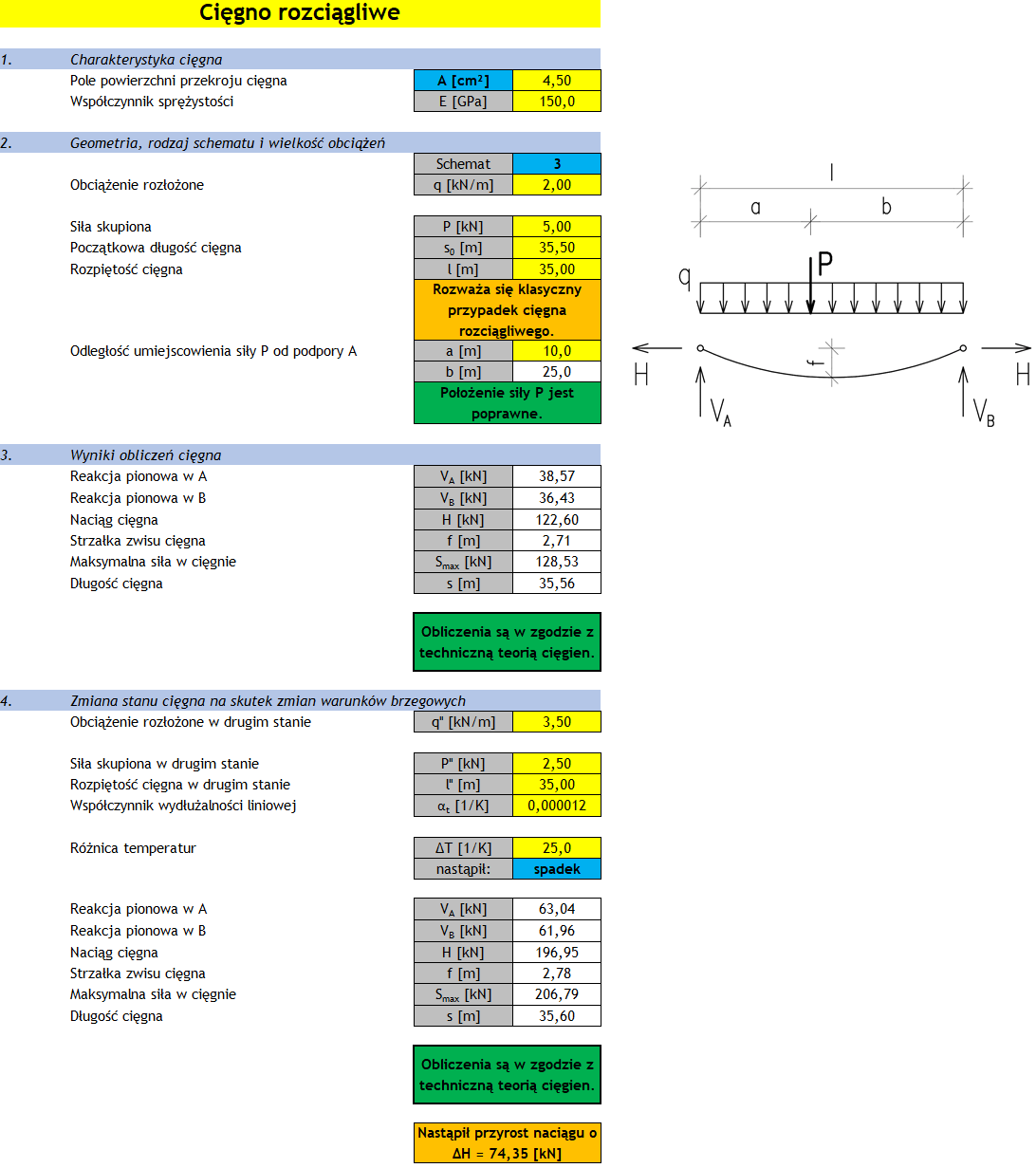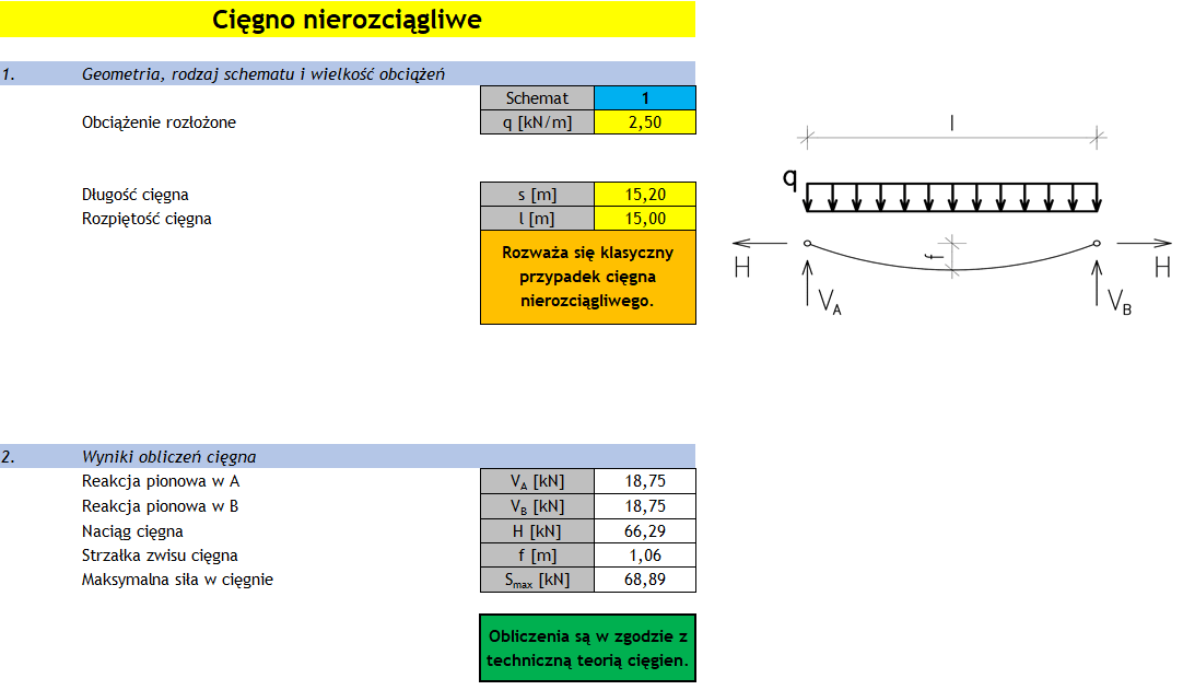 | cięgno kalkulatoryinzynierskie.pl | Program pozwala na zwymiarowanie cięgna o małym zwisie (f/l < 0,1). Program działa w środowisku Microsoft Excel. |