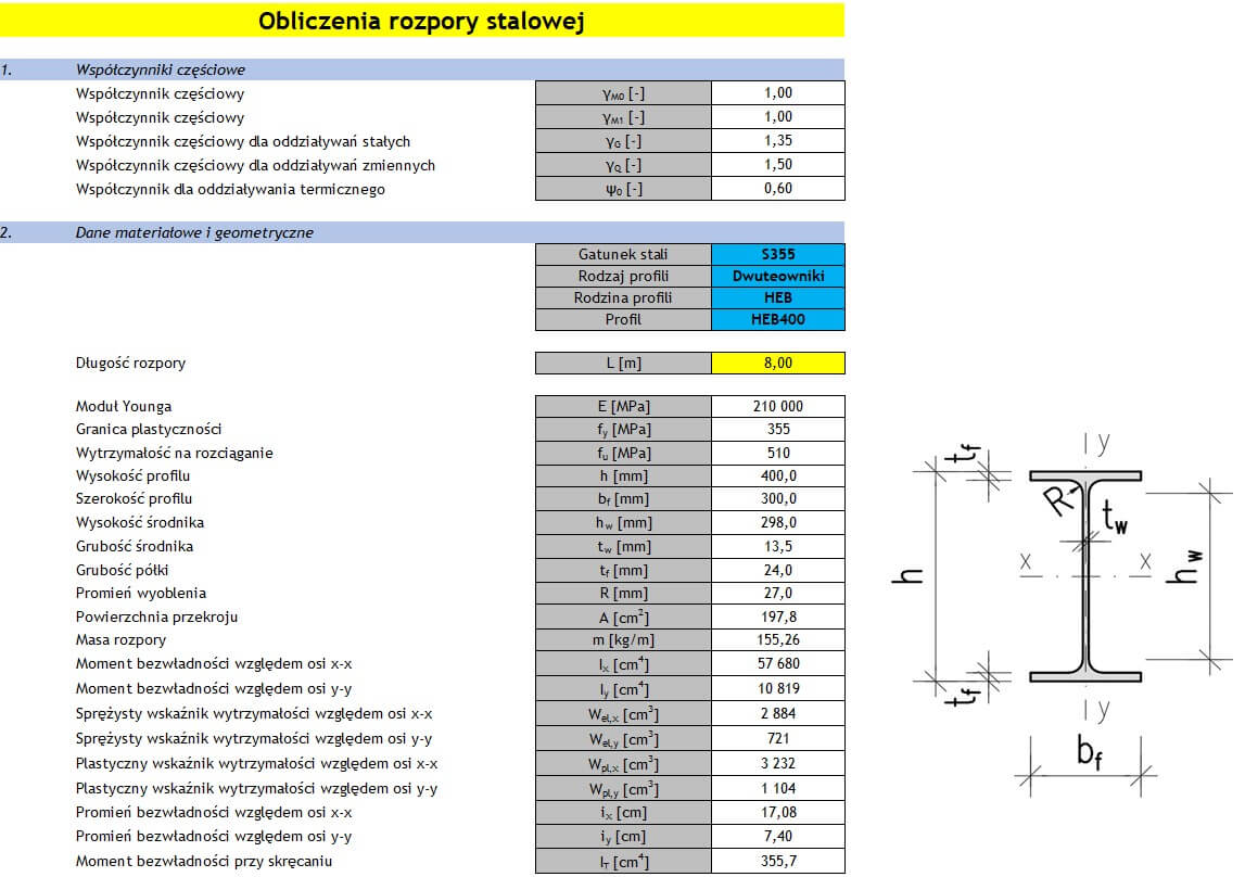 | rozpora stalowa kalkulatoryinzynierskie.pl | Program pozwala na pełne zwymiarowanie rozpory stalowej o przekroju dwuteowym (HEB, HEA, IPE, IPN) oraz zamkniętym (rura okrągła) według normy PN-EN 1993 (Eurokod 3). Program działa w środowisku Microsoft Excel. |