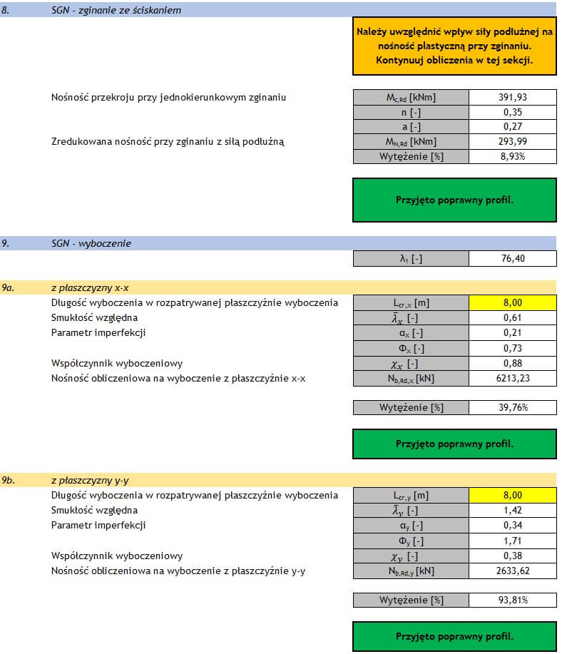 | słup stalowy kalkulatoryinzynierskie.pl | Program pozwala na pełne zwymiarowanie słupa stalowego o przekroju dwuteowym (HEB, HEA, IPE, IPN), ceowym (UPE, UPN) i teowym (½HEB, ½HEA, ½IPE) według normy PN-EN 1993 (Eurodkod 3). Program działa w środowisku Microsoft Excel. |