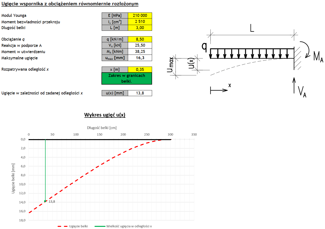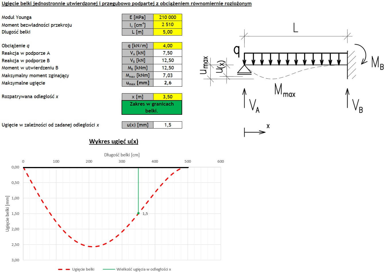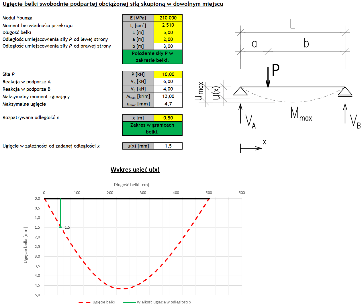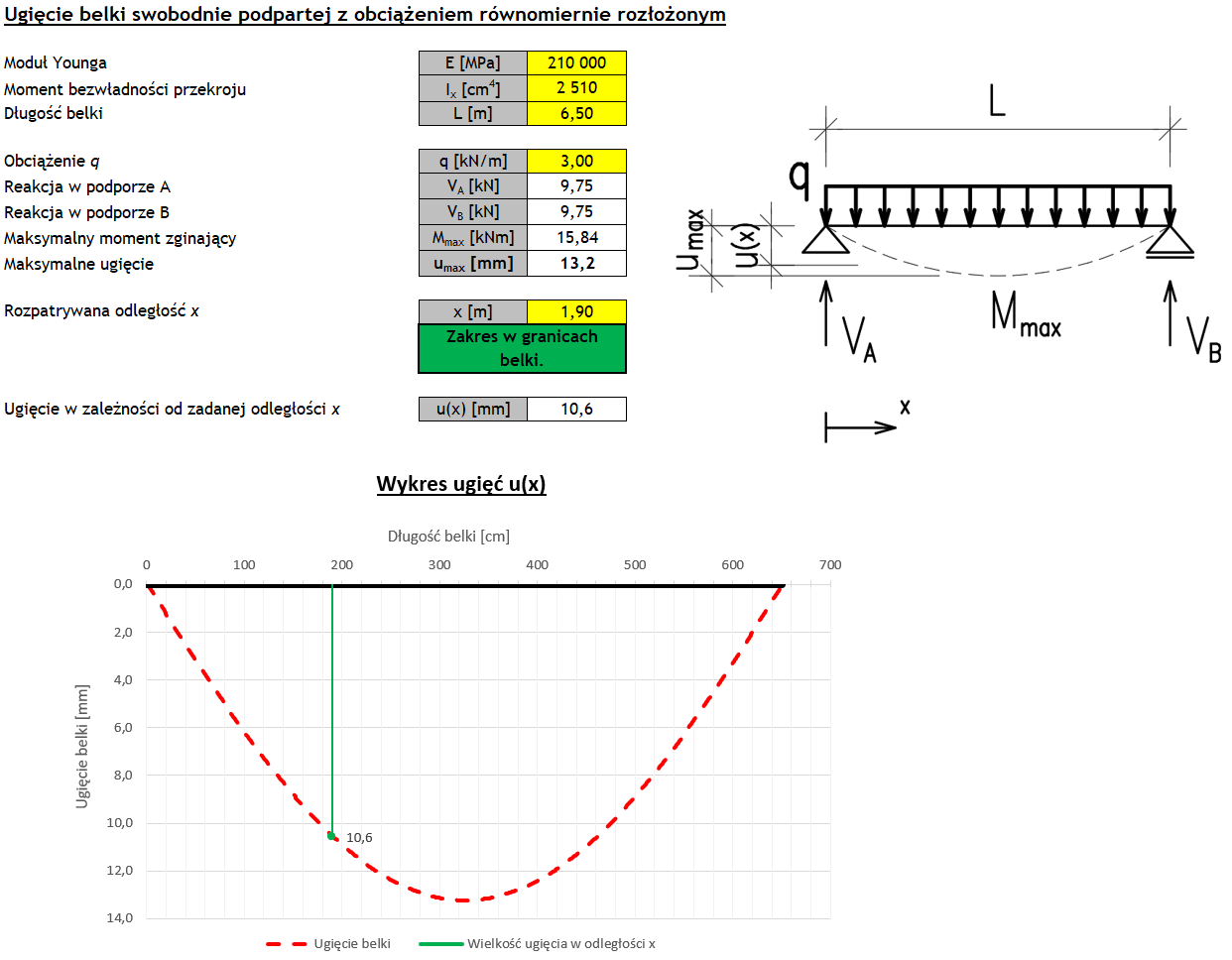 | obliczanie ugięcia belek kalkulatoryinzynierskie.pl
