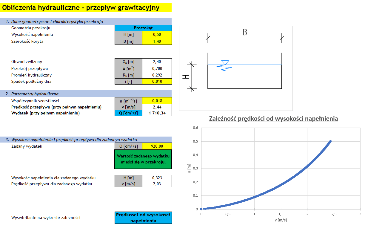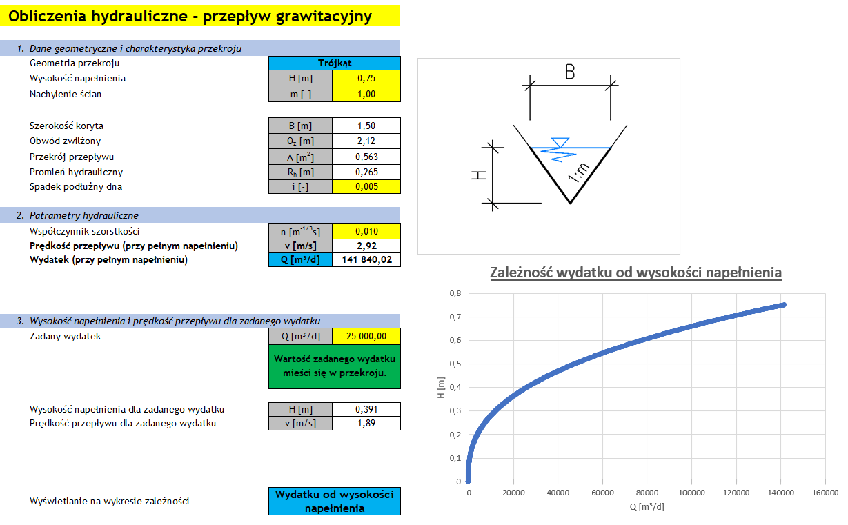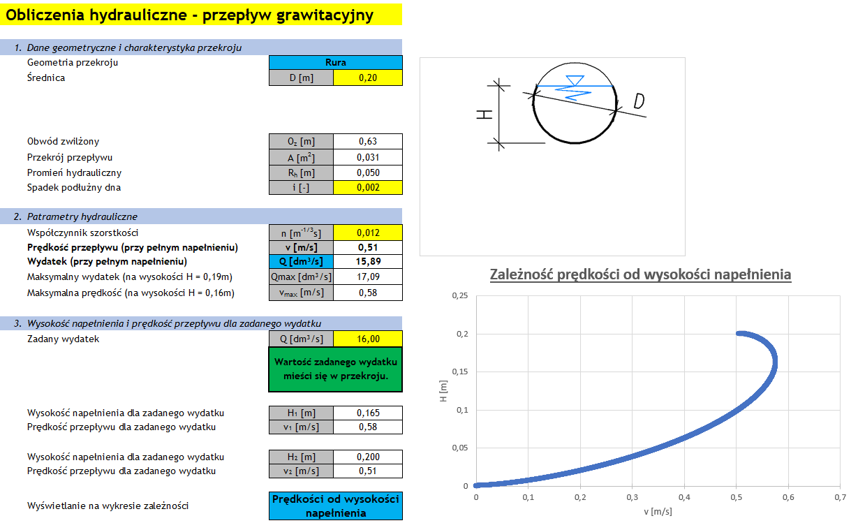 | przepływ grawitacyjny kalkulatoryinzynierskie.pl
