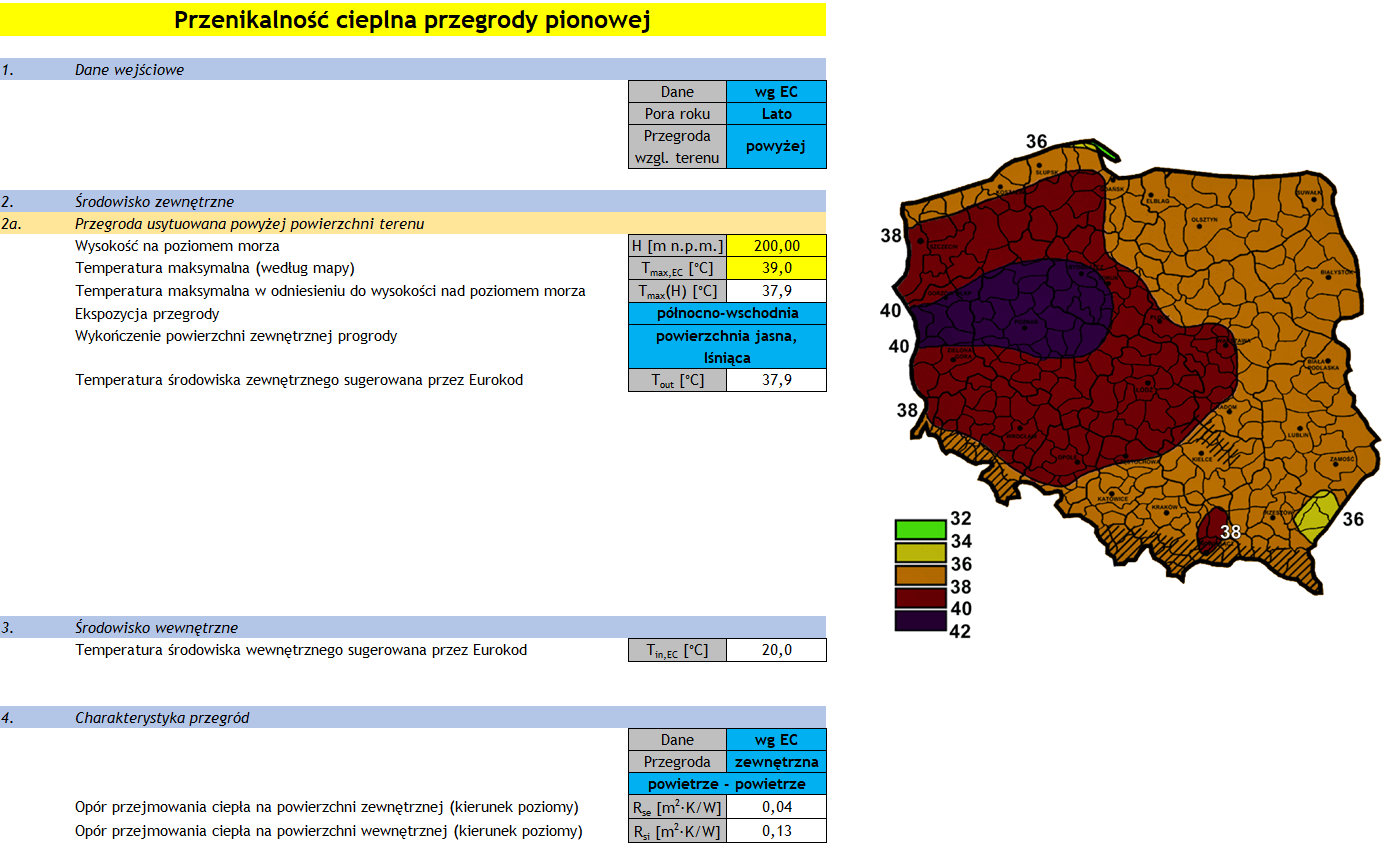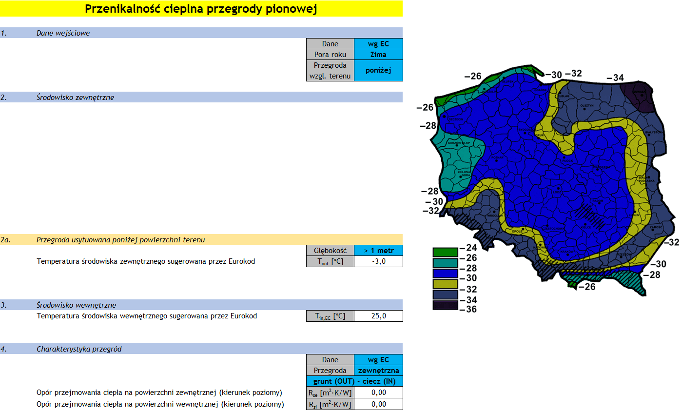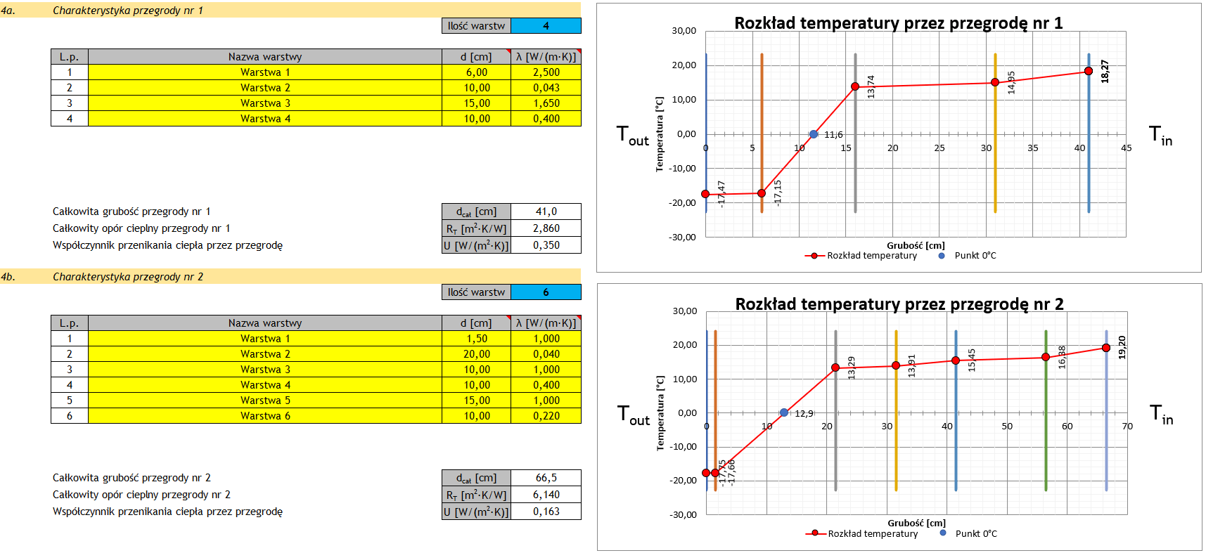 Program do obliczeń przenikalności cieplnej zgodnie z normą europejską PN-EN 1991-1-5. Pozwala na wyznaczenie całkowitego oporu cieplnego RT przegrody pionowej i współczynnika przenikania ciepła U w zależności od warstw, które się na nią składają. Użytkownik na możliwość zadania do 8 warstw w przegrodzie i oprócz prowadzenia obliczeń zgodnie z postanowieniami normowymi, może wprowadzić swoje temperaturowe warunki brzegowe. Program graficznie przedstawia rozkład temperatury przez poszczególne warstwy. Dodatkowo dla usprawnienia obliczeń, załączono arkusz z tabelą pomocniczą zawierającą obliczeniowe współczynniki przewodzenia ciepła λ dla różnych materiałów oraz umożliwiono prowadzenie kalkulacji dla dwóch odrębnych przegród równocześnie. Program działa w środowisku Microsoft Excel. |