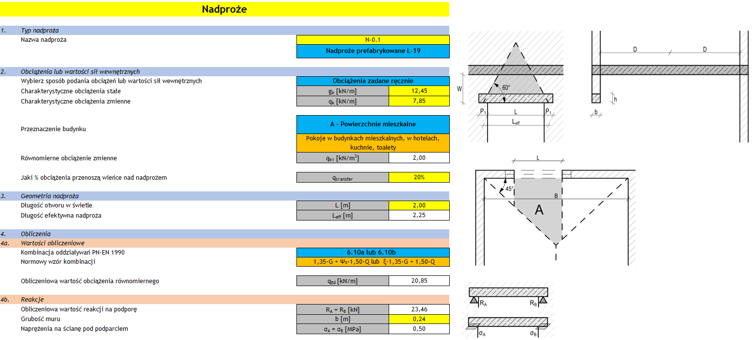 | nadproże L-19 kalkulatoryinzynierskie.pl