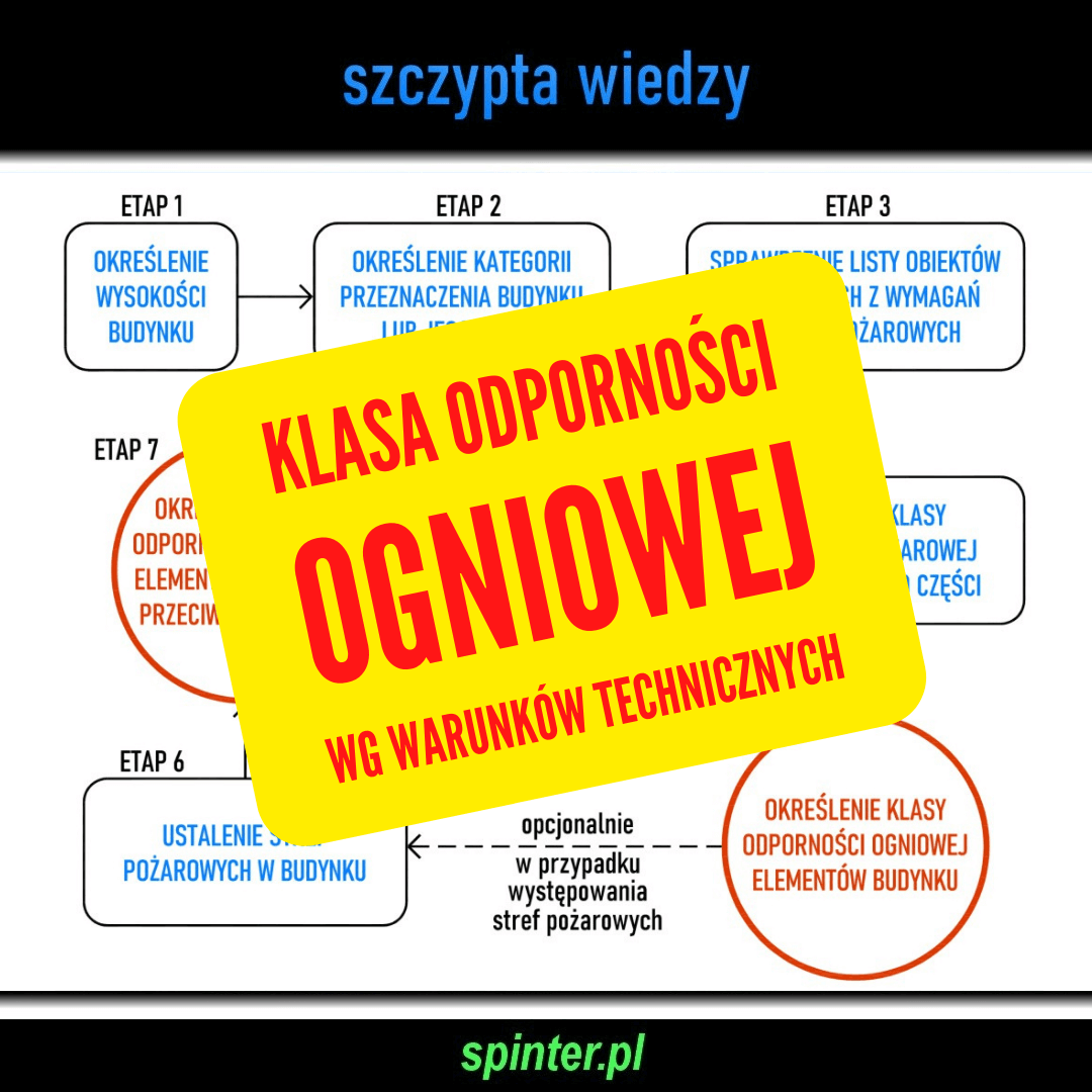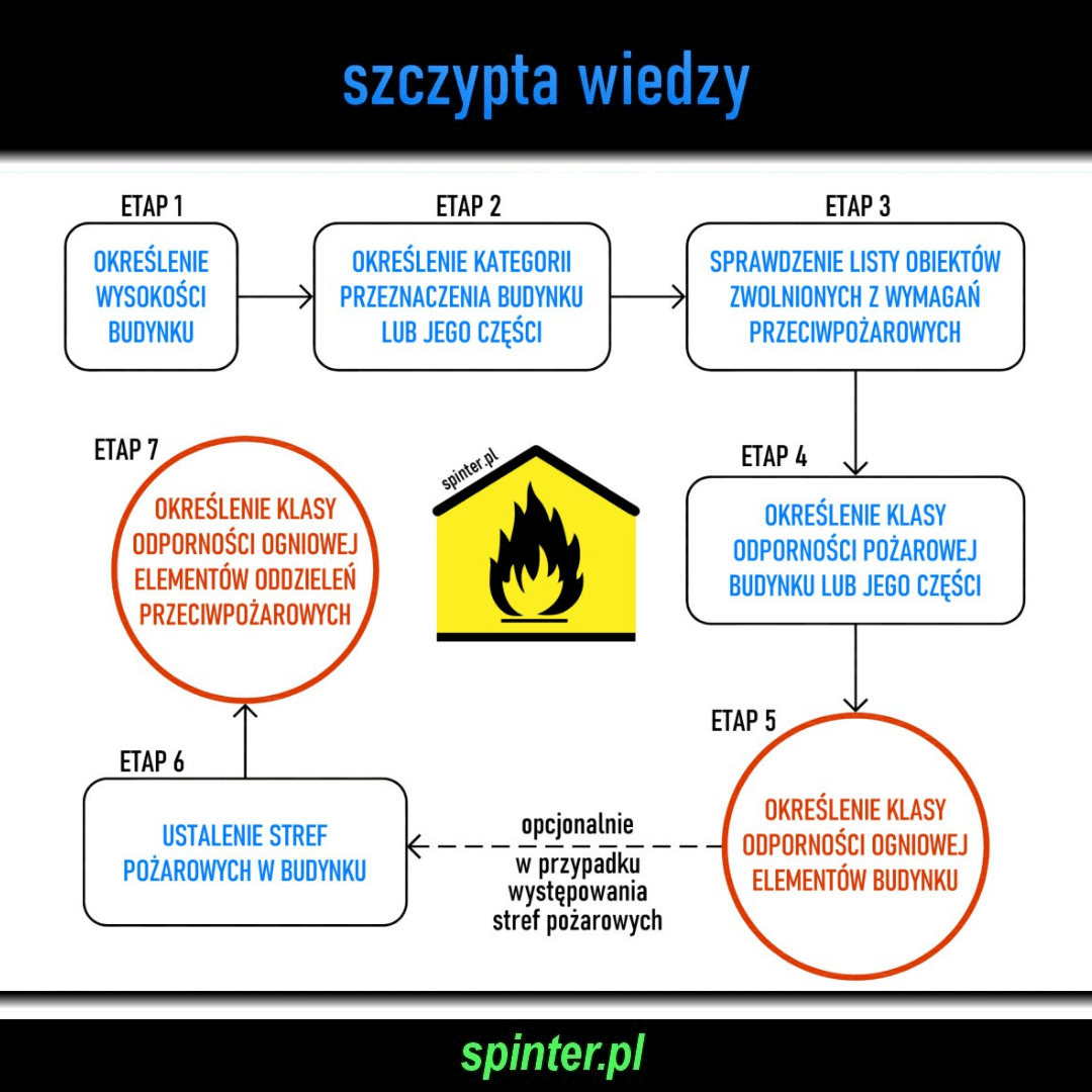 Przedstawiamy ogólny schemat postępowania przy określaniu: – klasy odporności pożarowej budynku – klasy odporności ogniowej elementów budynku – klasy odporności ogniowej elementów oddzieleń przeciwpożarowych w budynku.