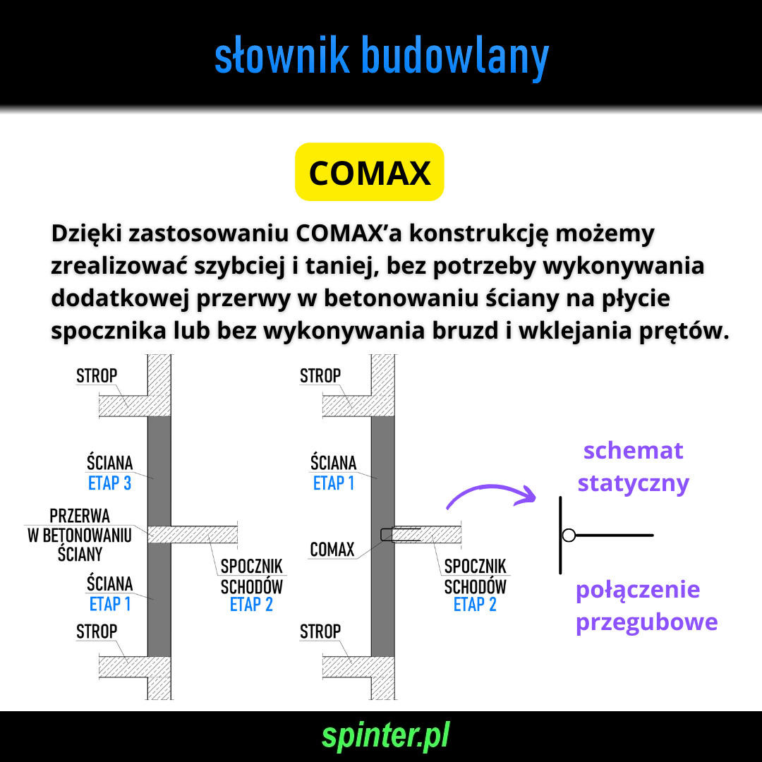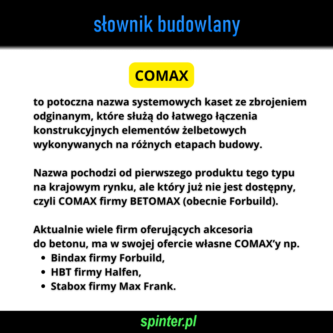 COMAX – to potoczna nazwa systemowych kaset ze zbrojeniem odginanym, które służą do łatwego łączenia konstrukcyjnych elementów żelbetowych wykonywanych na różnych etapach budowy.