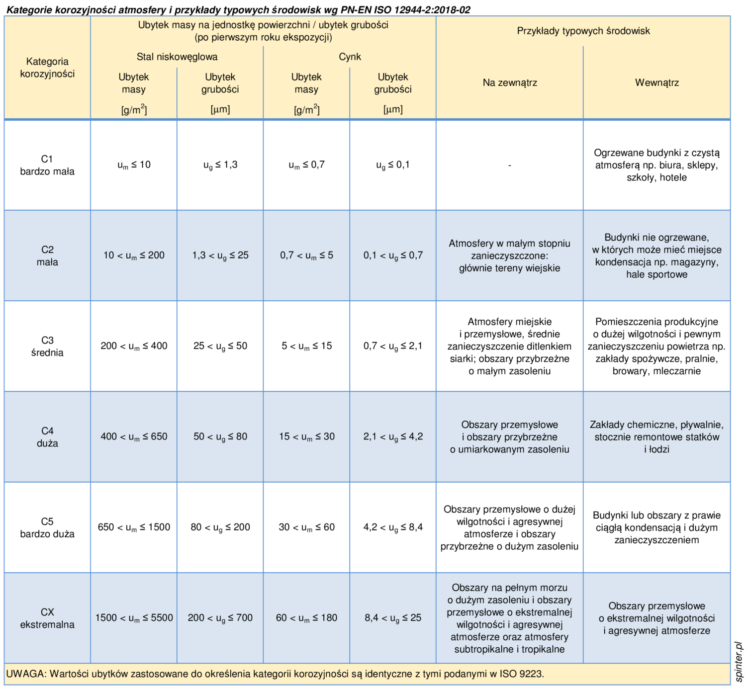 Kategorie korozyjności dla konstrukcji stalowych Zobacz również:trwałość ochrony systemu malarskiego konstrukcji stalowych