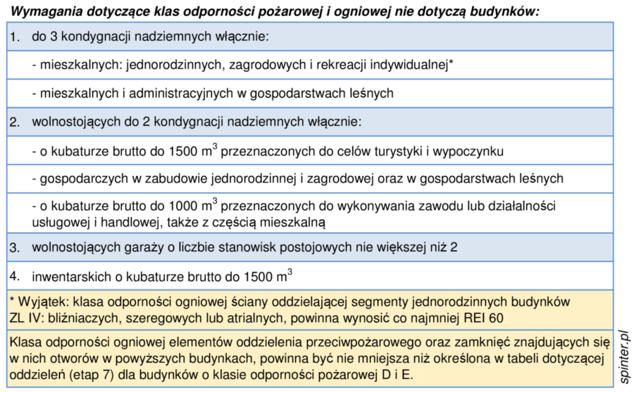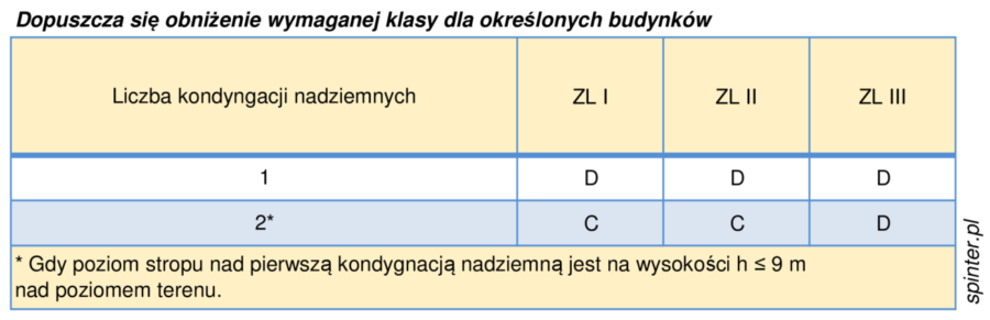 Jeżeli część podziemna budynku jest zaliczona do ZL, klasę odporności pożarowej budynku ustala się, przyjmując jako liczbę jego kondygnacji lub jego wysokość odpowiednio: sumę kondygnacji lub wysokości części podziemnej i nadziemnej, przy czym do tego ustalenia nie bierze się pod uwagę tych części podziemnych budynku, które są oddzielone elementami oddzielenia przeciwpożarowego o klasie odporności ogniowej co najmniej REI 120 i mają bezpośrednie wyjścia na zewnątrz.