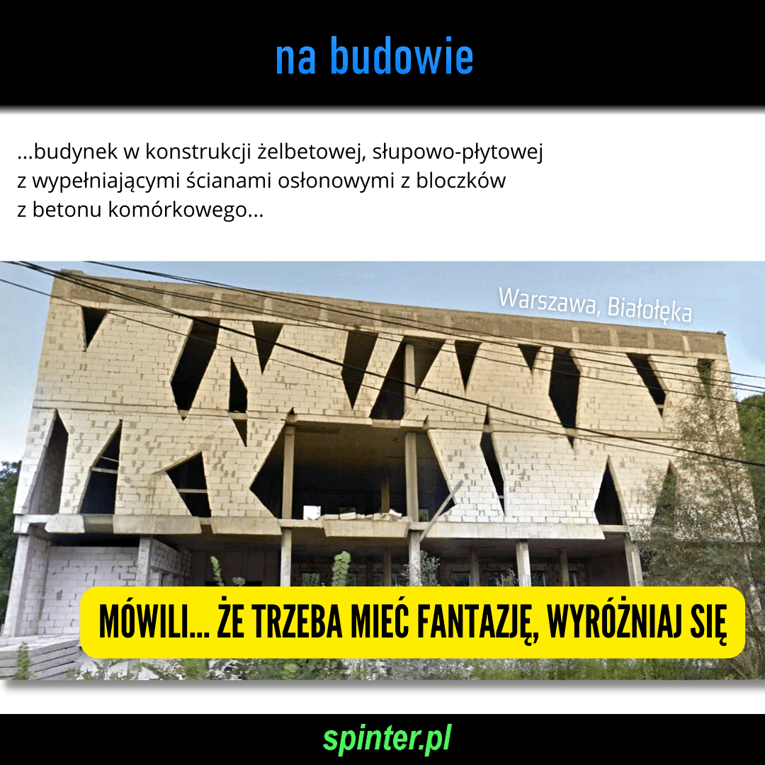 Mówili, że trzeba mieć fantazję… Post published:26 sierpnia, 2022 Post category:na budowie / najnowsze Reading time:1 min read Czy leci z nami … konstruktor?… budynek w konstrukcji żelbetowej, słupowo-płytowej z wypełniającymi ścianami osłonowymi z bloczków z betonu komórkowego.Część murowanych filarków na piętrze w tej wycinance już poddała się naporowi wiatru. Można obstawiać, które będą następne. Read more articles Previous PostChrup, chrup…coś zaczyna nam podgryzać konstrukcję. Następny wpisJak szybko zmierzyć szerokość belki? Zwłaszcza gdy nie masz drabiny lub trzeba zinwentaryzować wiele elementów. Może ci się spodobać również Zadbaj o kompetencje miękkie 16 lipca, 2024 Zasięg wpływu wykopu 23 kwietnia, 2024 Jaka powinna być otulina zbrojenia? 8 marca, 2024