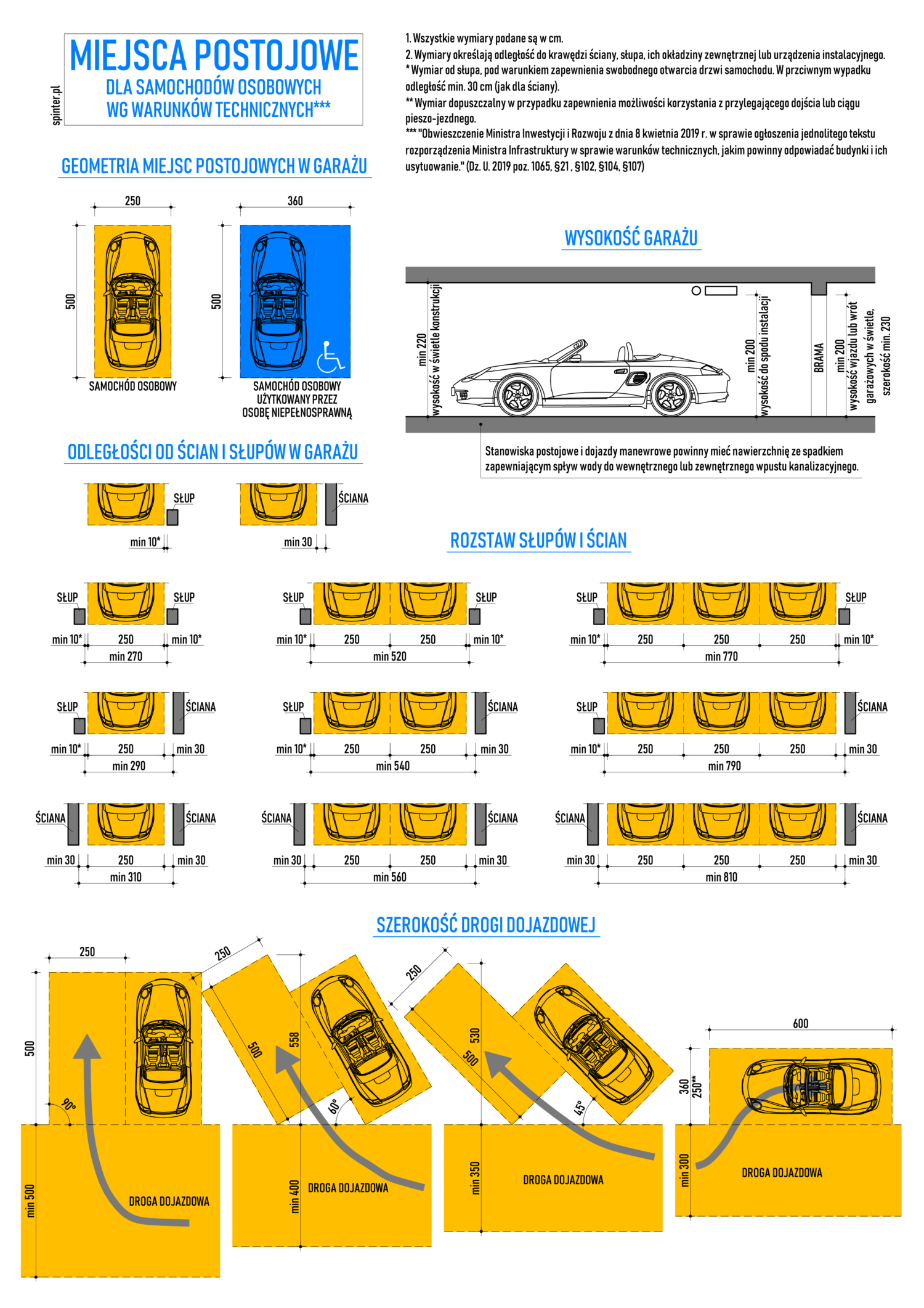 1. Stanowiska postojowe dla samochodów powinny mieć wymiary wynoszące co najmniej: