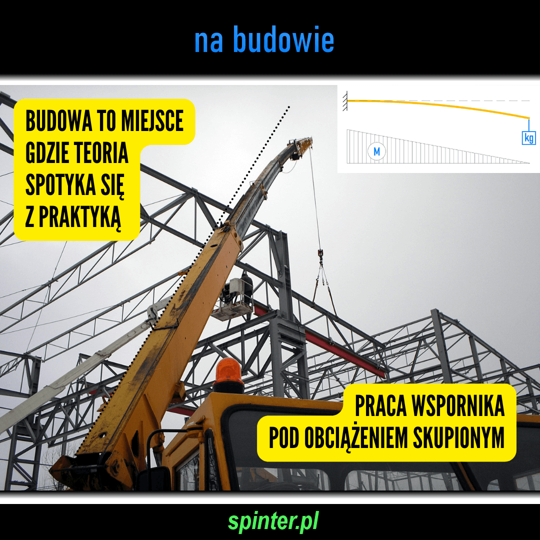 Im większy wysięg, tym większe ugięcie jego końca oraz większy moment zginający M w punkcie zamocowania.