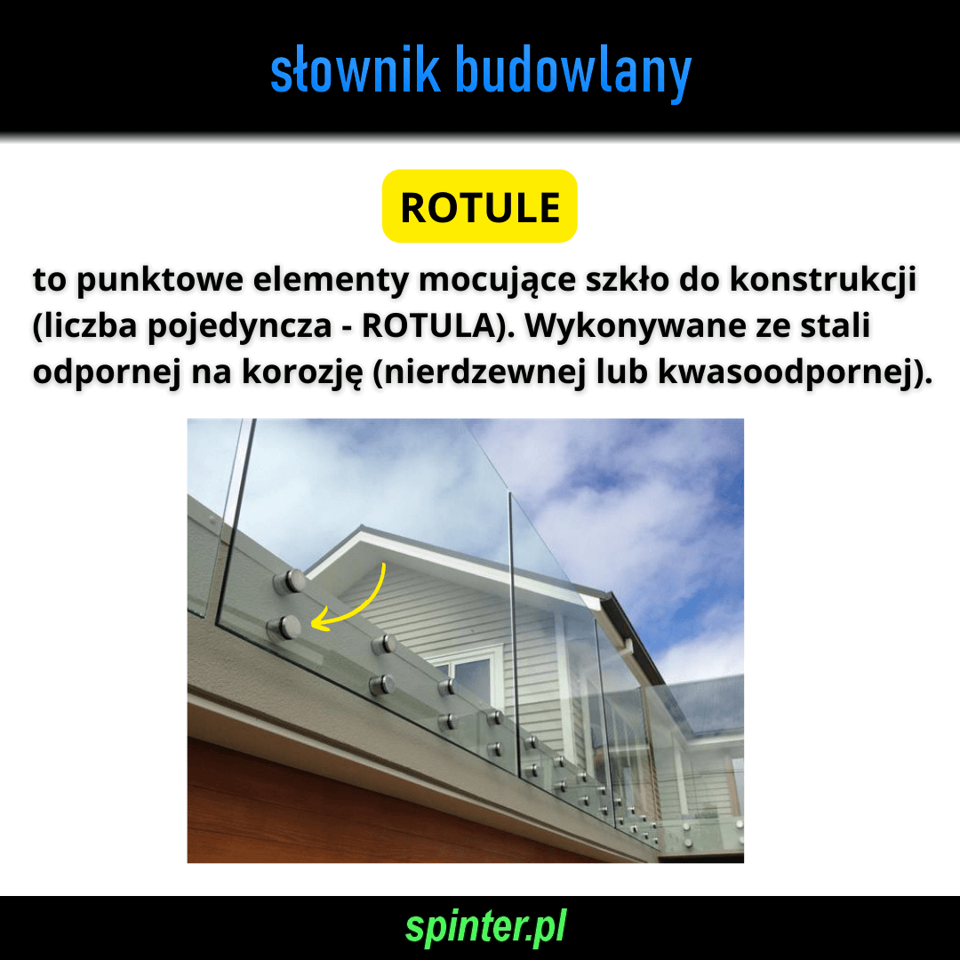 ROTULE – to punktowe elementy mocujące szkło do konstrukcji (liczba pojedyncza – ROTULA).