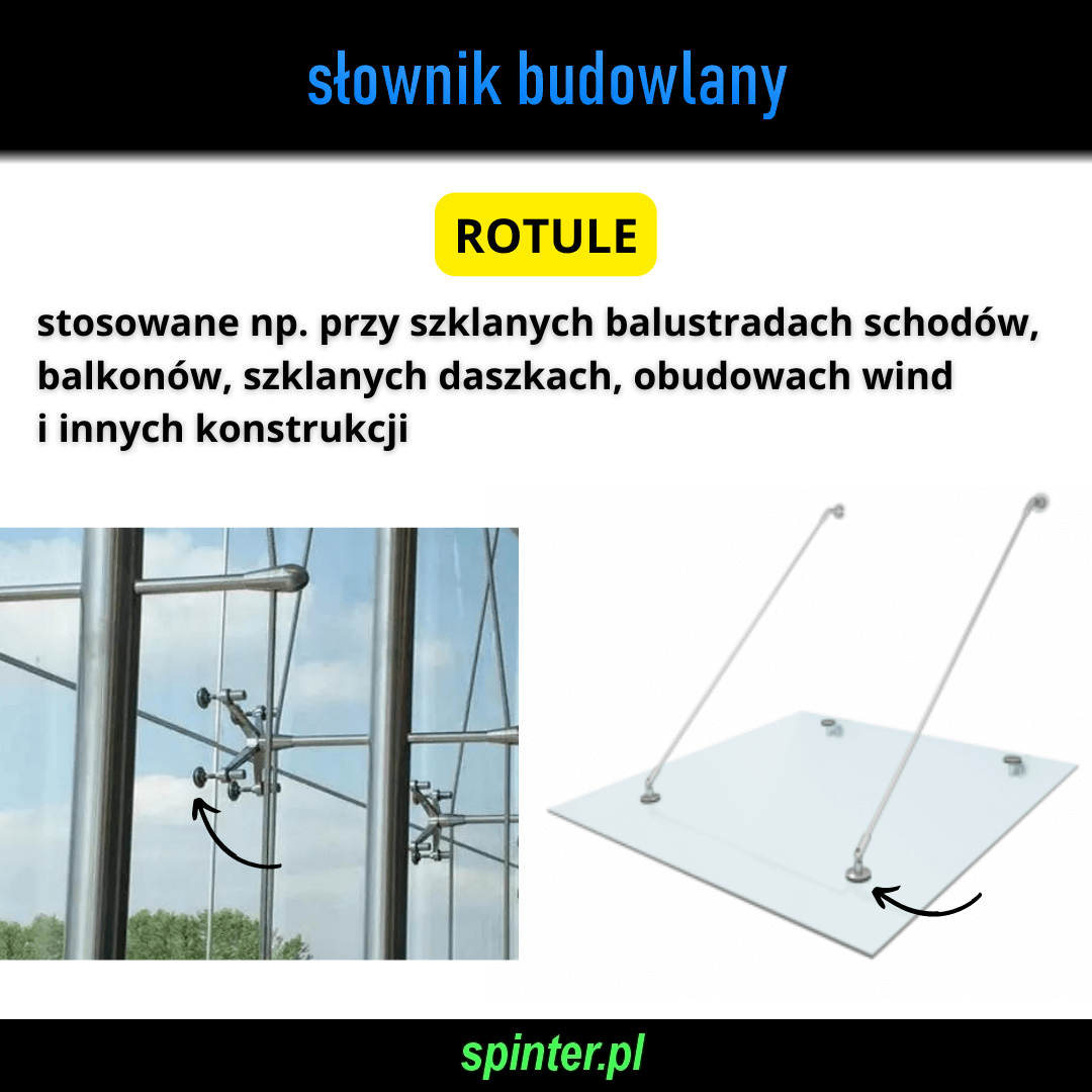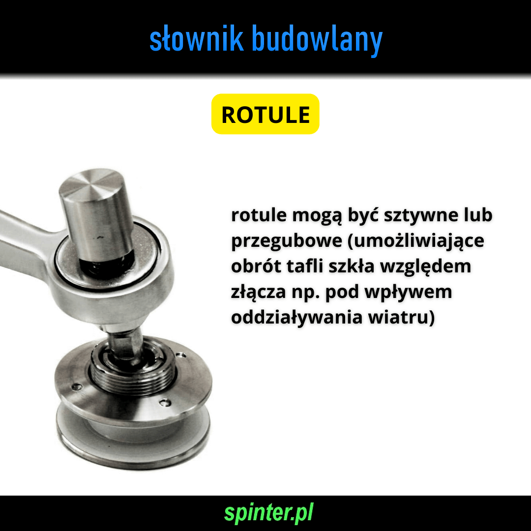 Rotule mogą być sztywne lub przegubowe, umożliwiające obrót tafli szkła względem złącza np. pod wpływem oddziaływania wiatru.