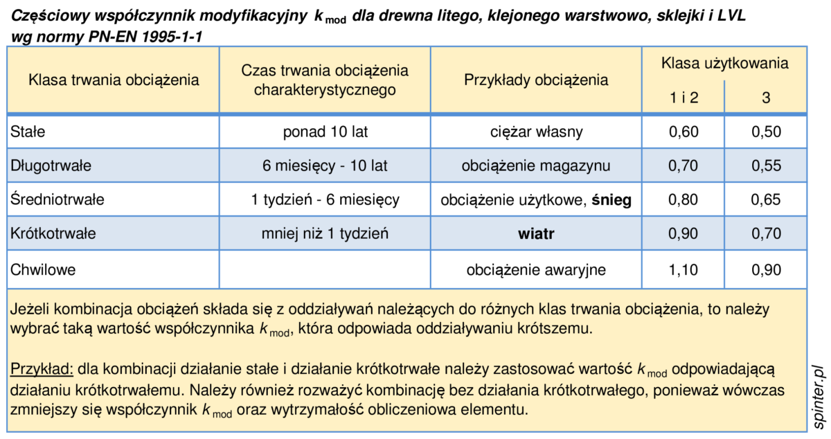 WSPÓŁCZYNNIK MODYFIKACYJNY W KONSTRUKCJACH DREWNIANYCH Współczynnik modyfikacyjny wg normy PN-EN Współczynnik modyfikacyjny wg normy PN-B (wycofanej) Zobacz również:rodzaje drewna konstrukcyjnego ■ klasy użytkowania konstrukcji drewnianych ■ klasy drewna
