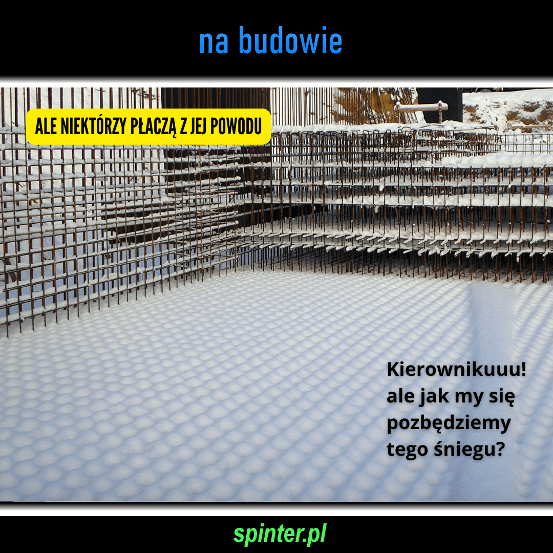Śnieg to zawsze dodatkowy problem na budowie, zwłaszcza gdy zalega głęboko w szalunku lub zbrojeniu.